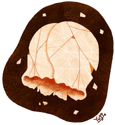 硬質な花に守られるため、花が落ちるまでは蜜が出続けます。この蜜はランプムシの大好物。ランプムシはお尻が光る蛍の様な虫で、この花に入って蜜を食べます。一旦花の中に入ったランプムシはなかなか出てこないのです。そんな習性を利用して、ノームの森の住人たちは、この花をとって、ランタンの様に使用することがあります。現代では、ランプシェードリリーの蜜に似せて作った「ランプジャム」を使用するランタンが開発されていますが、この花で作った天然のランタンの方が、ノームの森の住人たちには好まれる傾向にあります。
