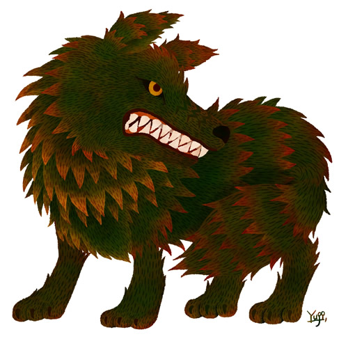 同じ時期、『ノームの森』のガーダーウルフの若いオスが何匹か行方不明になりました。『ノームの森』の住人たちの間では「人間の村に近づきすぎて、イヴの子たちの持つ悪意に毒され、我を失ったガーダーウルフの仕業なのではないか?」という噂(うわさ)が流れました。というのも、そのジェヴォーダンという地域までは、とてつもなく遠かったのです。そんな『ノームの森』まで噂が届いたことがおかしなことだった上に、ガーダーウルフが何匹かいなくなったタイミングだったので、『ノームの森』は珍しく大騒ぎになったのでした。みんな、ガーダーウルフの仕業ではないことを願いながらも、本当のことはわからないまま現在に至っているのです。その後、行方不明になった若いオスたちは、二度と森には戻ってこず、どうなったのかは誰も知りません。この事件に関係がなく、どこかで無事に幸せな天寿(てんじゅ)をまっとうしてくれていたら良いのですが。
