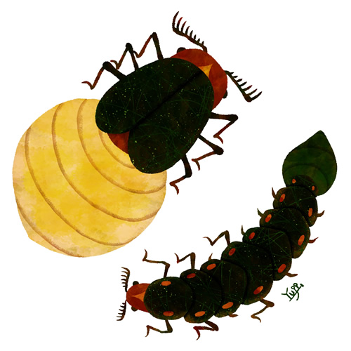 ランプムシは、この光の点滅でコミュニケーションをとるとされています。ちょうど、絵の様な点滅スピードは「求愛行動」で異性を探す際に用いられます。また激しく点滅する様な場合は「警戒」や「威嚇」を意味します。